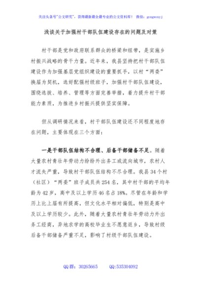 / 浅谈关于加强村干部队伍建设存在的问题及对策
