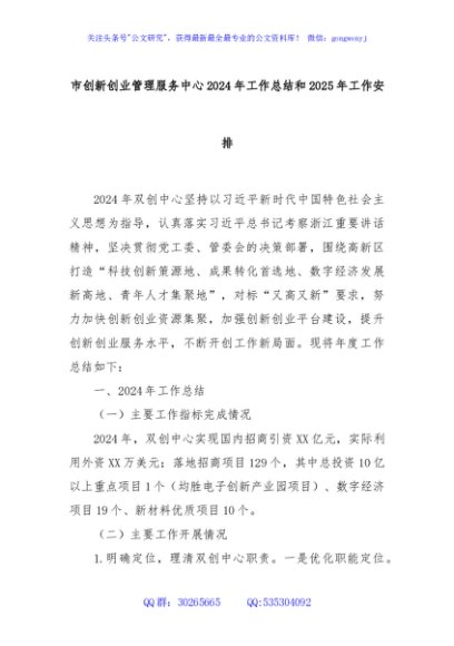 / 市创新创业管理服务中心2024年工作总结和2025年工作安排