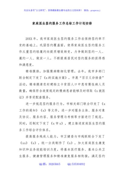 / 家庭医生签约服务工作总结工作计划安排