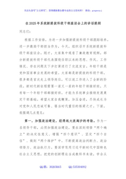 / 在2025年系统新提拔科级干部座谈会上的讲话提纲