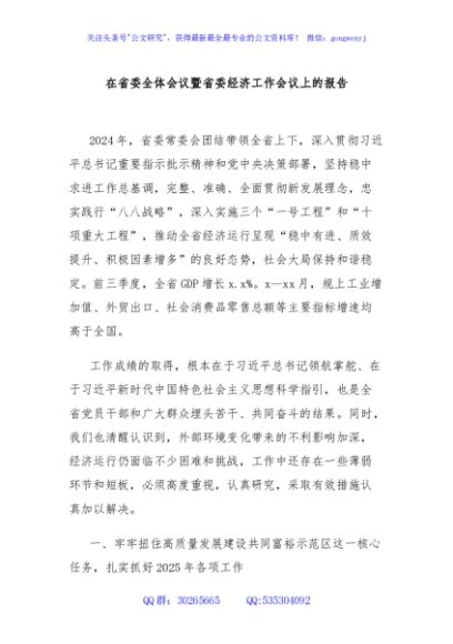 / 在省委全体会议暨省委经济工作会议上的报告
