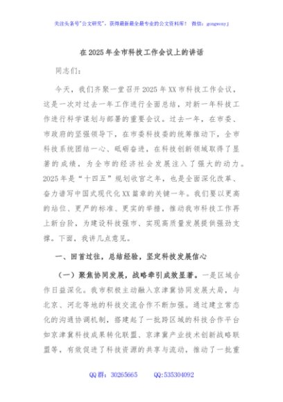 / 在2025年全市科技工作会议上的讲话