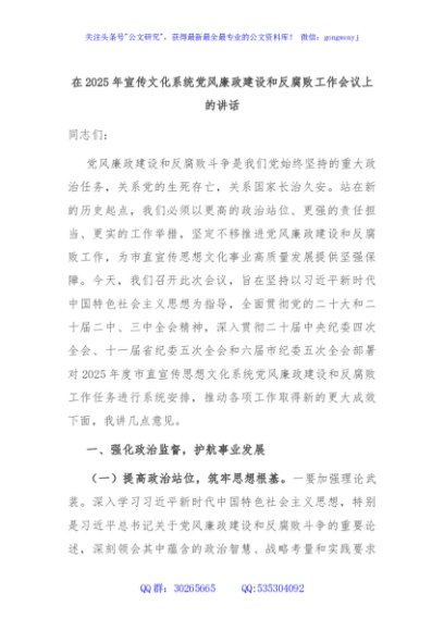 / 在2025年宣传文化系统党风廉政建设和反腐败工作会议上的讲话