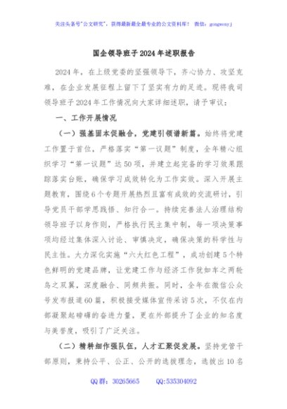 / 国企领导班子2024年述职报告