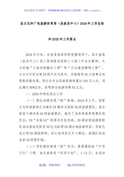 / 县文化和广电旅游体育局(县旅发中心)2024年工作总结和2025年工作要点