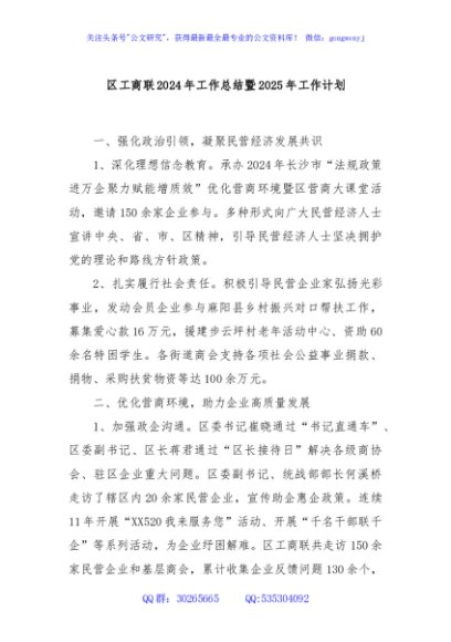 / 区工商联2024年工作总结暨2025年工作计划
