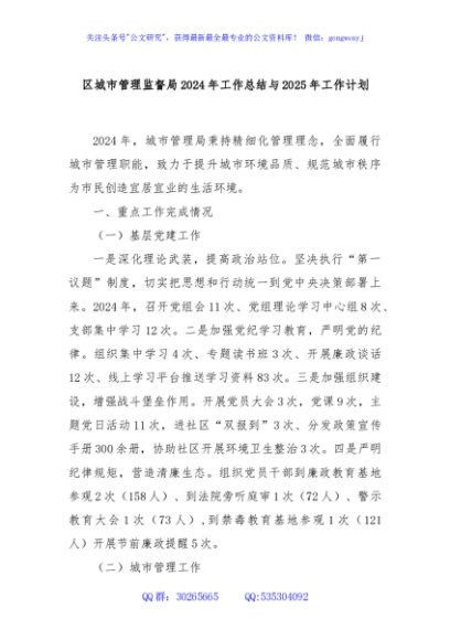 / 区城市管理监督局2024年工作总结与2025年工作计划