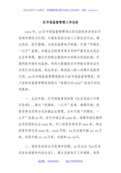 区市场监督管理工作总结