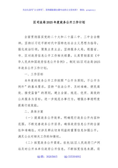 / 区司法局2025年度政务公开工作计划