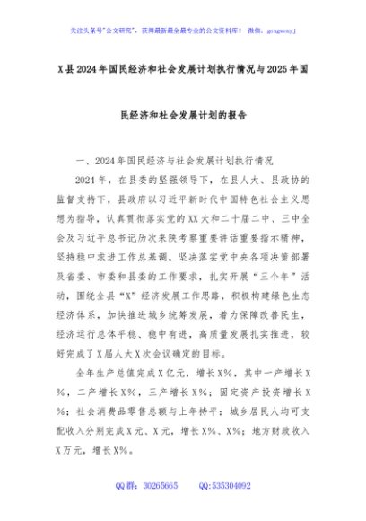 / X县2024年国民经济和社会发展计划执行情况与2025年国民经济和社会发展计划的报告