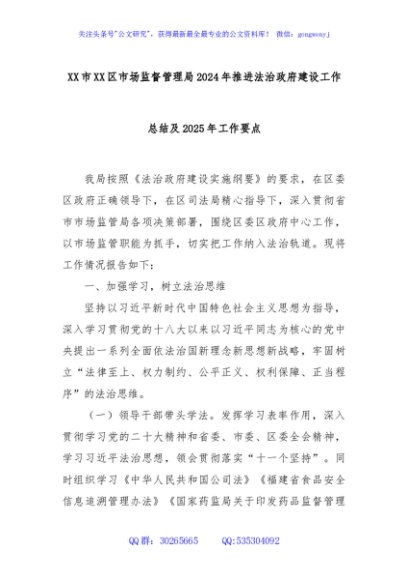 XX市XX区市场监督管理局2024年推进法治政府建设工作总结及2025年工作要点