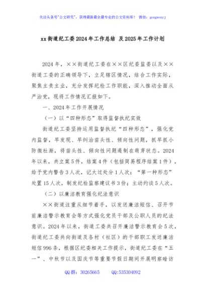 / xx街道纪工委2024年工作总结 及2025年工作计划