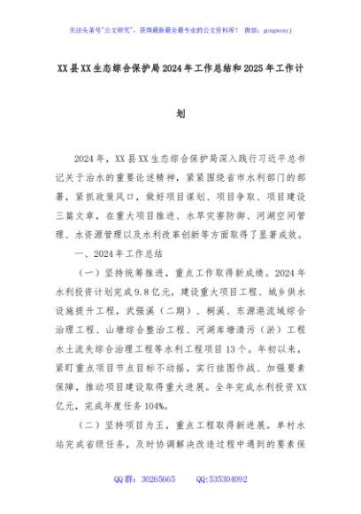 / XX县XX生态综合保护局2024年工作总结和2025年工作计划