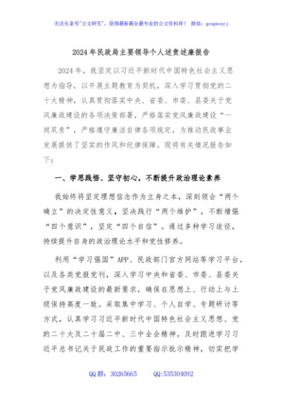 / 2024年民政局主要领导个人述责述廉报告