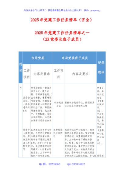 / 2025年党建工作任务清单