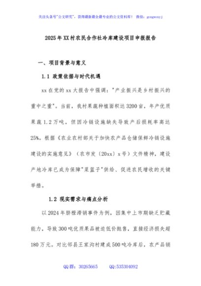 / 2025年XX村农民合作社冷库建设项目申报报告