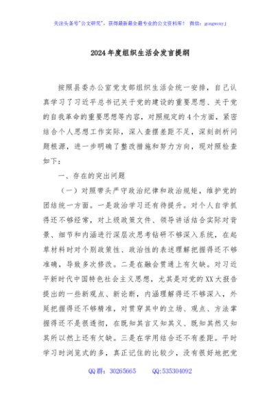 2024年度领导干部个人专题民主生活会、组织生活会对照检查材料(四个带头)