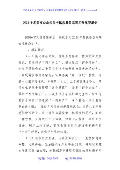 / 2024年度国有企业党委书记抓基层党建工作述职报告