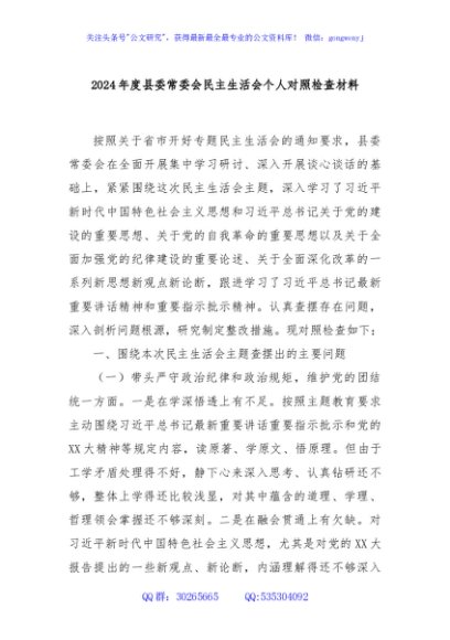 / 2024年度县委常委会民主生活会个人对照检查材料