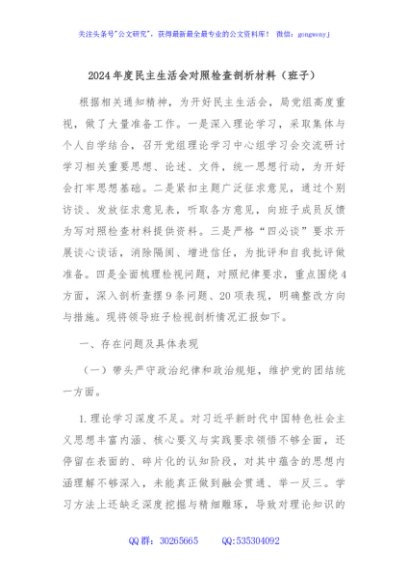 / 2024年度民主生活会对照检查剖析材料(班子)