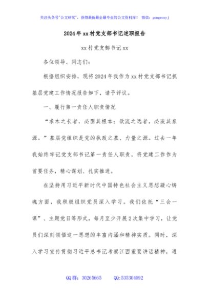 / 2024 年 xx 村党支部书记述职报告(提升版)