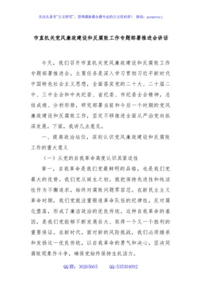 / 市直机关党风廉政建设和反腐败工作专题部署推进会讲话