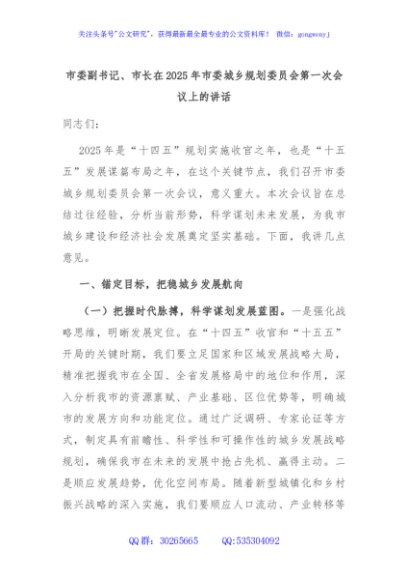/ 市委副书记、市长在2025年市委城乡规划委员会第一次会议上的讲话