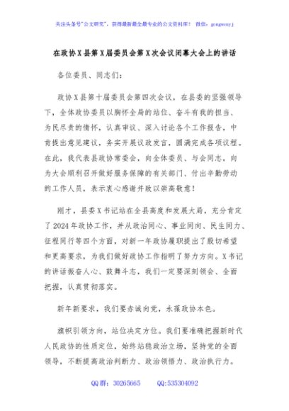 / 在政协X县第X届委员会第X次会议闭幕大会上的讲话