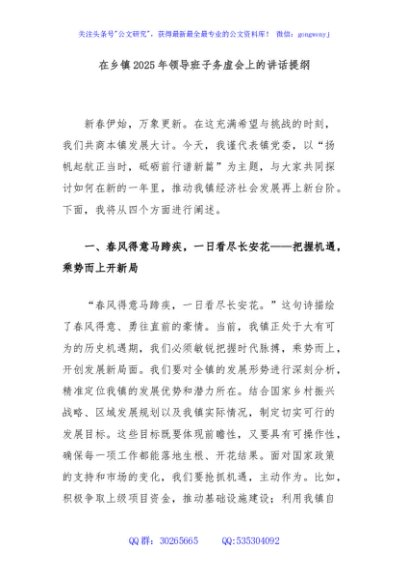 / 在乡镇2025年领导班子务虚会上的讲话提纲