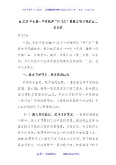 / 在2025年全县一季度经济“开门红”暨重点项目调度会上的讲话
