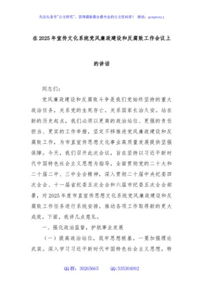 / 在2025年宣传文化系统党风廉政建设和反腐败工作会议上的讲话