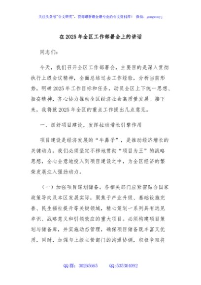 / 在2025年全区工作部署会上的讲话
