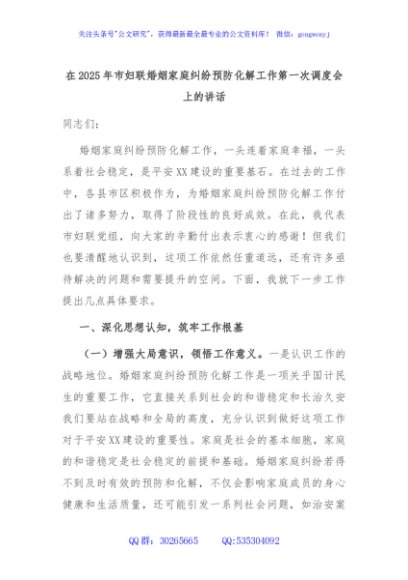/ 在2025年市妇联婚姻家庭纠纷预防化解工作第一次调度会上的讲话