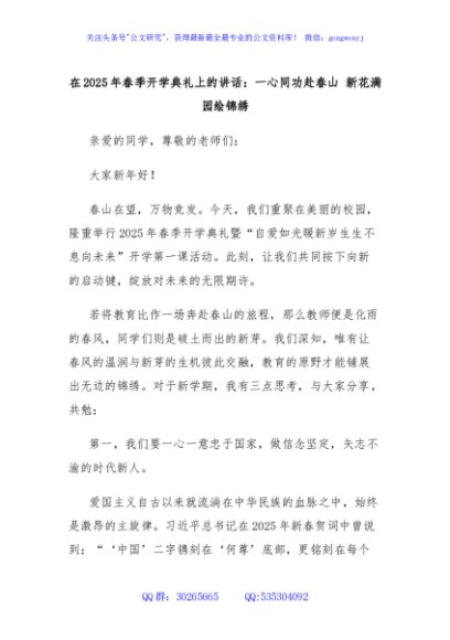 / 在2025年春季开学典礼上的讲话:一心同功赴春山 新花满园绘锦绣
