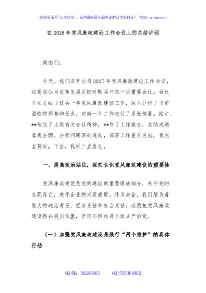 / 在2025年党风廉政建设工作会议上的总结讲话