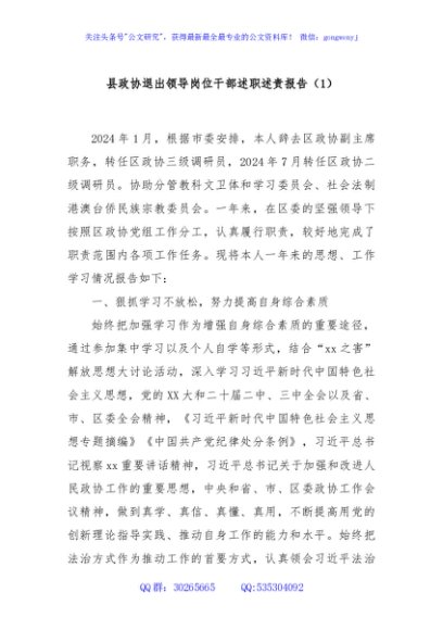 / 县政协退出领导岗位干部述职述责报告(1)