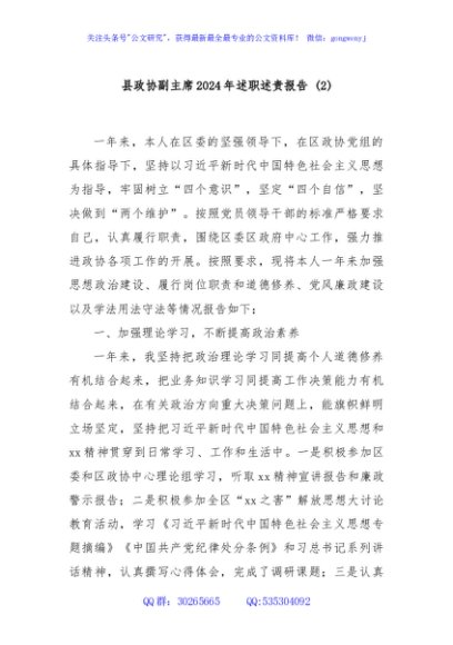 县政协副主席2024年述职述责报告 (2)