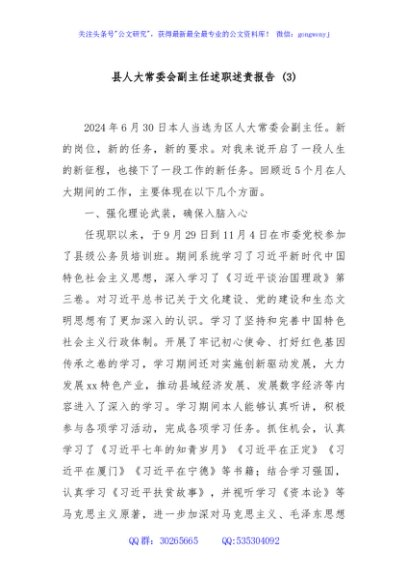 县人大退出领导岗位干部2024年述职述责报告 (2)
