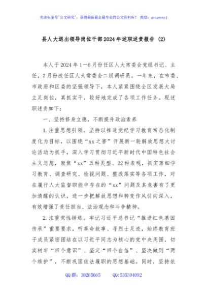/ 县人大退出领导岗位干部2024年述职述责报告 (2)