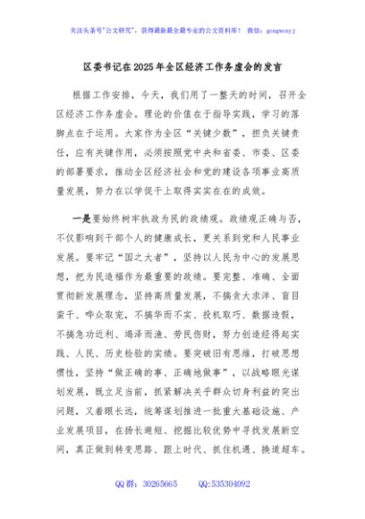 / 区委书记在2025年全区经济工作务虚会的发言