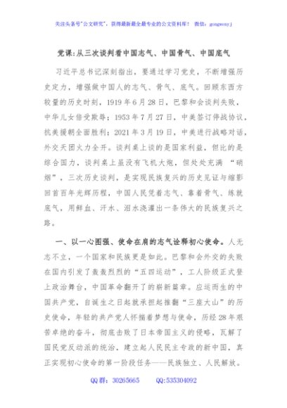 / 党课从三次谈判看中国志气、中国骨气、中国底气