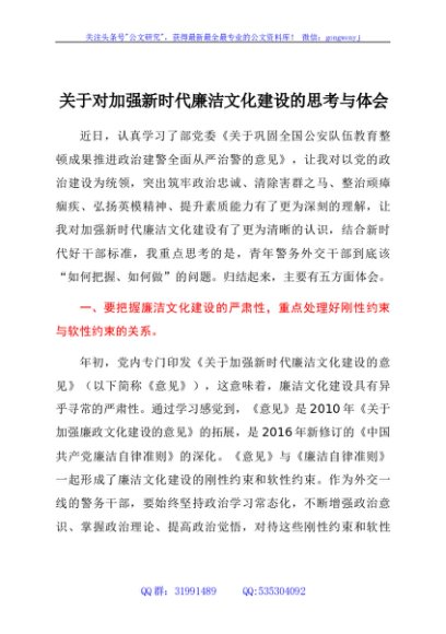 / 关于对加强新时代廉洁文化建设的思考与体会