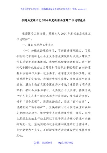 / 住建局党组书记2024年度抓基层党建工作述职报告