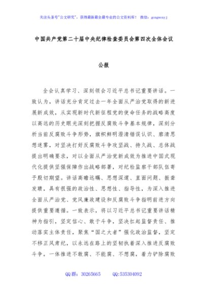 / 中国共产党第二十届中央纪律检查委员会第四次全体会议公报