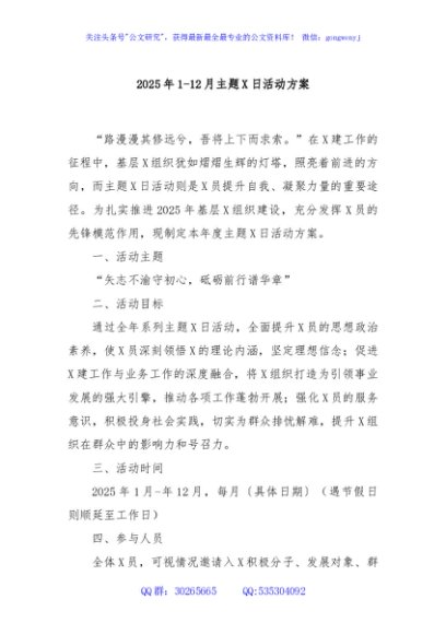 / 2025年1-12月主题党日活动方案