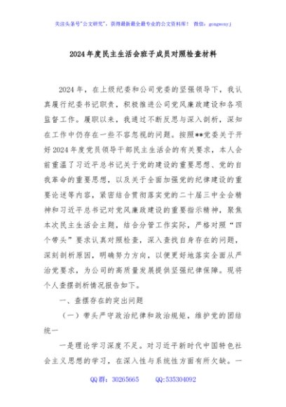 2024年从“五个方面”对民主生活会、组织生活会个人检视剖析