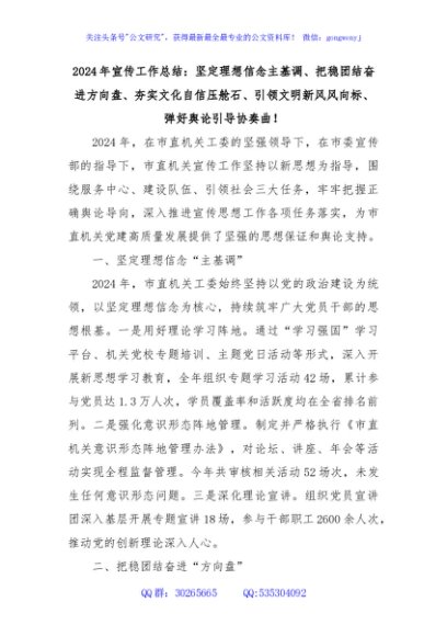 2024年宣传工作总结:坚定理想信念主基调、把稳团结奋进方向盘、夯实文化自信压舱石、引领文明新风风向标、弹好舆论引导协奏曲!