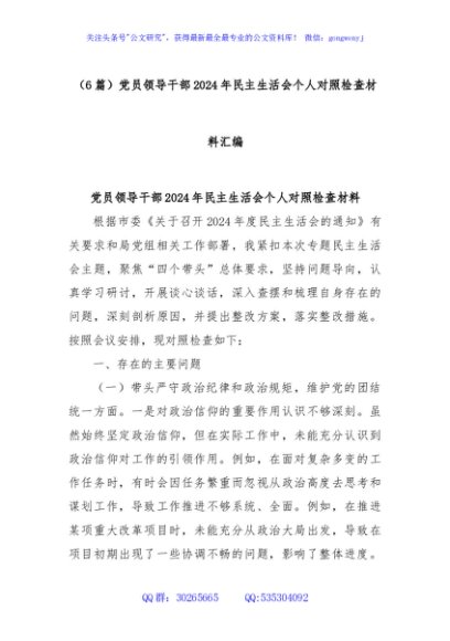 / (6篇)党员领导干部2024年民主生活会个人对照检查材料汇编
