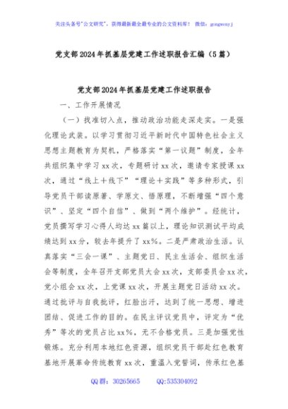 / (5篇)党支部2024年抓基层党建工作述职报告汇编
