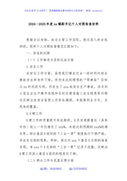 / 2024--2025年度xx镇副书记个人对照检查材料